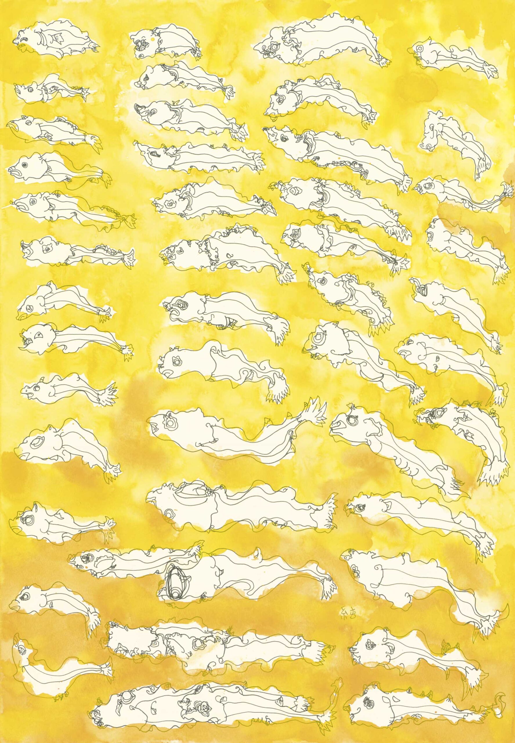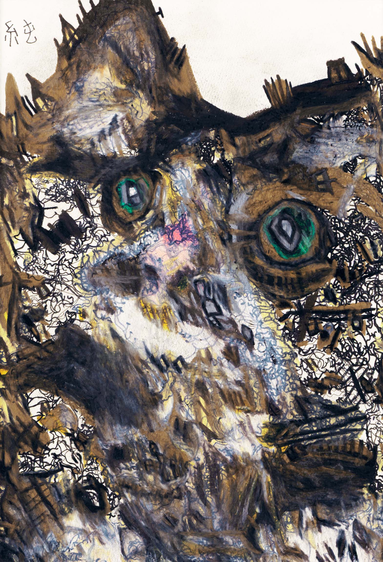 Layering countless lines, he captures even the finest details he wishes to express. With words being a difficult medium for him to convey his thoughts, it seems each stroke is imbued with his feelings.