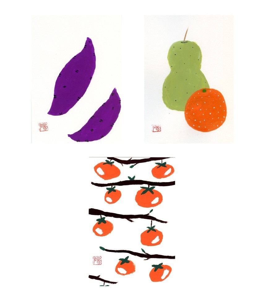 細木さん作、「さつまいも」「洋梨とみかん」「柿」です。