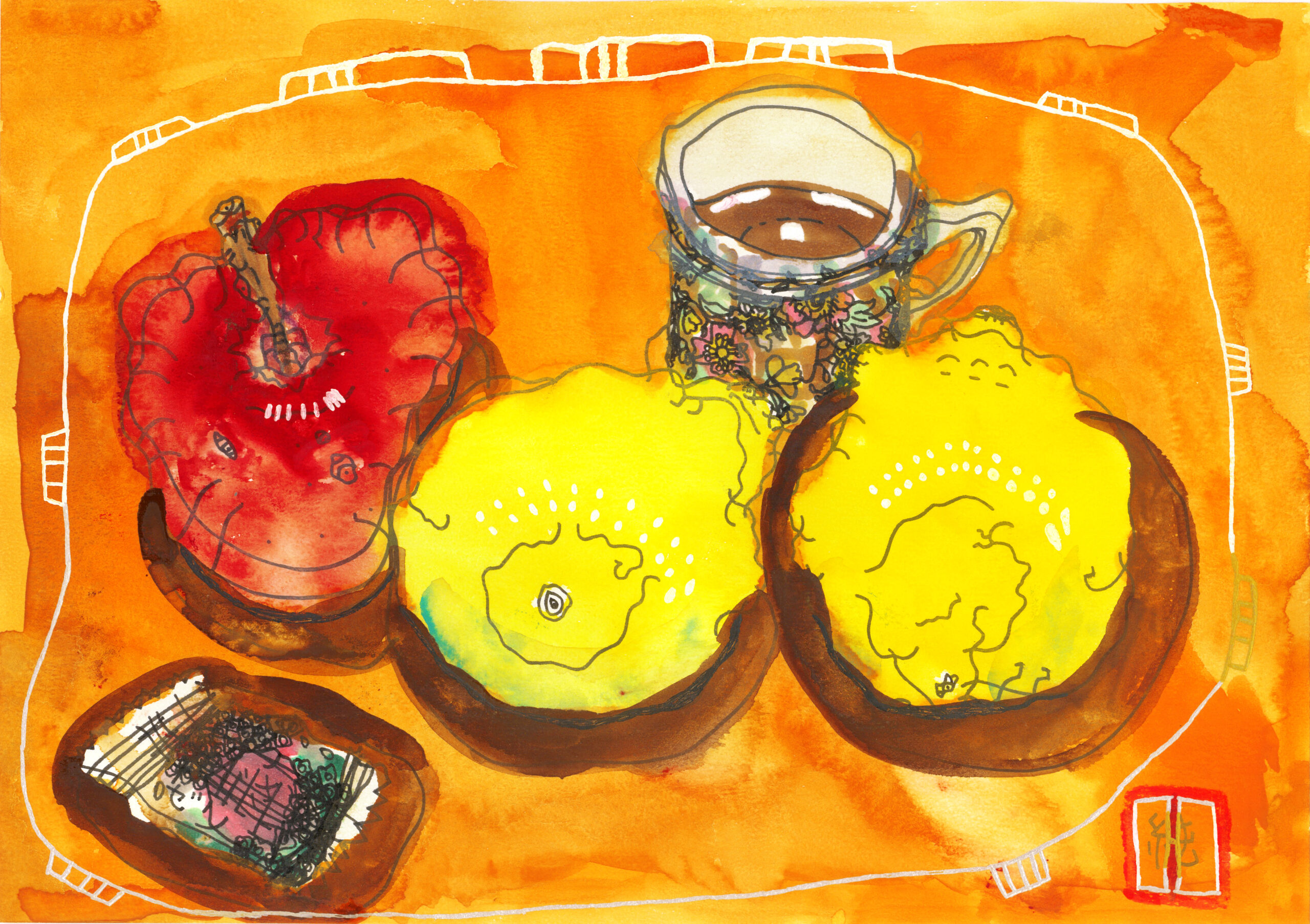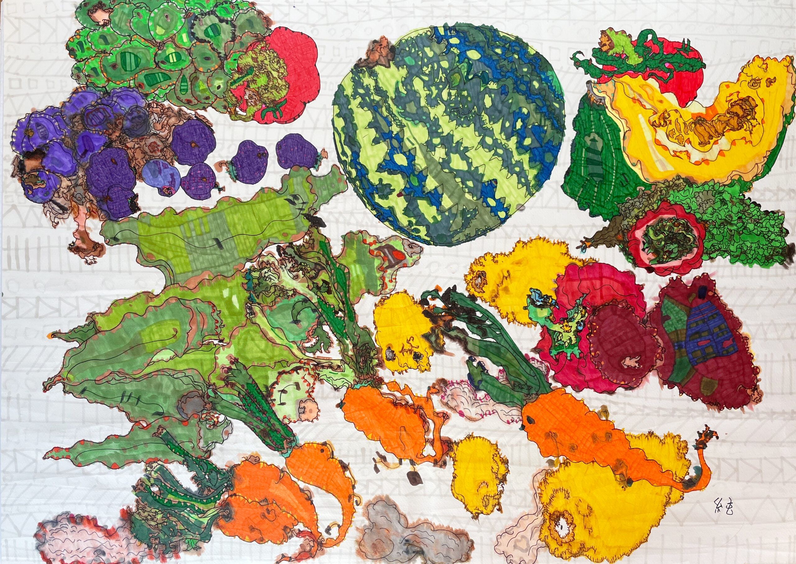 素材・技法:マーカー、水彩絵具、白ペン・紙