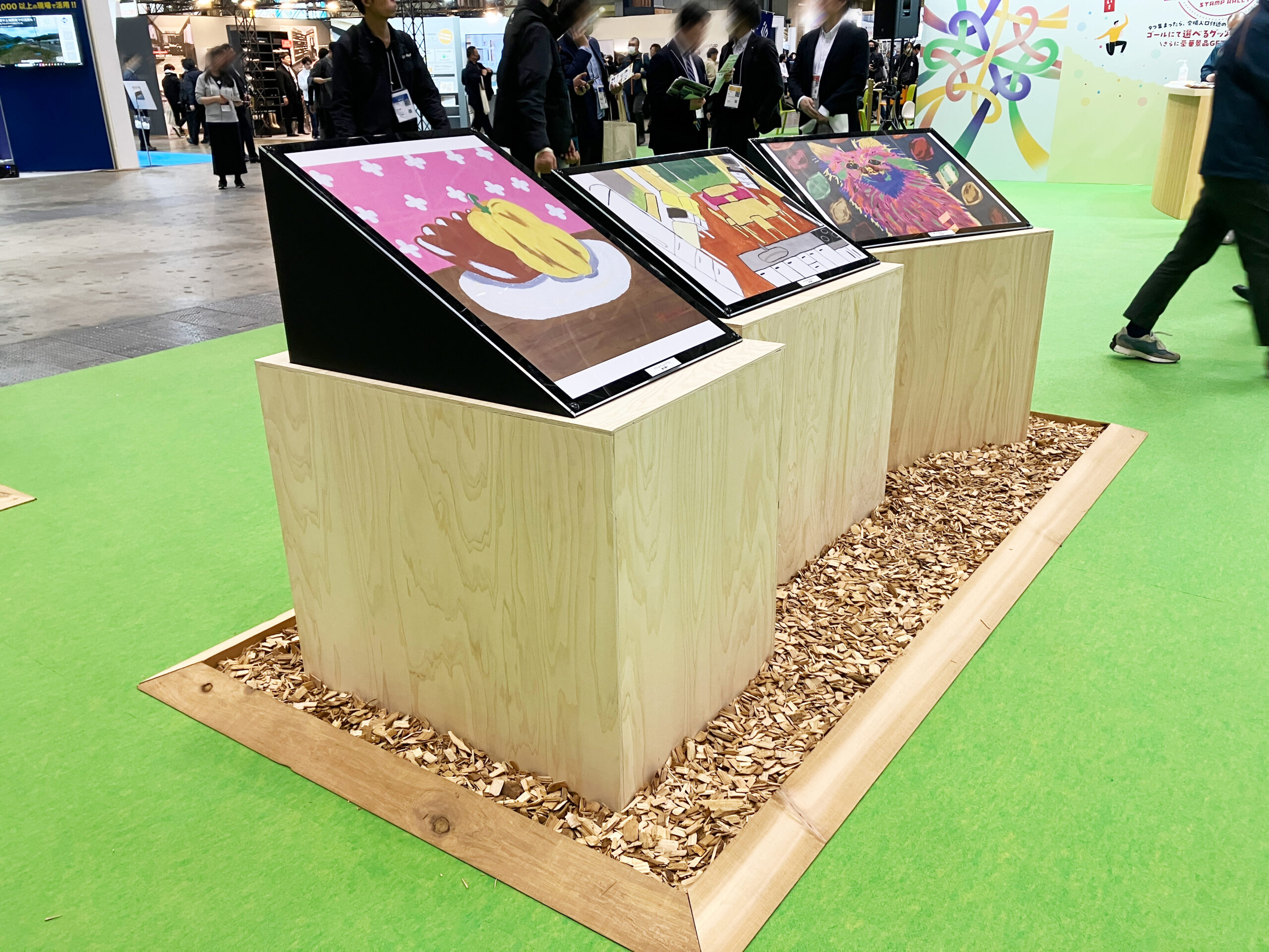 2月12日(木)~13日(金)に東京ビッグサイトにて行われた第46回ジャパン建材フェアにて、各出展企業様の社員、ご家族、ご親族の障害のある方のアート作品が展示されました。テーマ『住まう、を、笑顔に。』という内容で、私たちone’s artも、アーティスト3名の作品12点を展示していただきました。